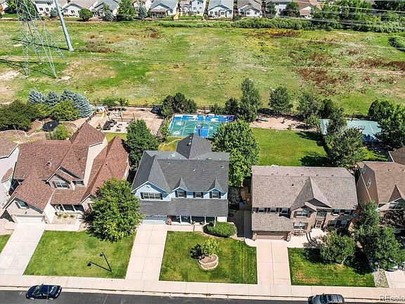 Don't miss your opportunity to live on one of the most popular streets in Parker! This amazing one owner home has it all! The popular James model of Richmond American Homes sits on over 1/4 acre with an open floor plan and space for everyone. Step up to the covered front porch and enter this sunny home with gleaming hardwood floors. The main floor boasts vaulted ceilings, formal dining, living room/den, office and half bath. The massive family room has four large windows with amazing views, window benches and a cozy fireplace. The gourmet kitchen is a cooks delight featuring a kitchen island with a new 5 burner gas cooktop, double ovens, solid granite counters, newer refrigerator, cabinets galore plus a pantry! Off of the kitchen you can enjoy the beautiful Colorado sunsets from your upper deck. Upstairs is your enormous primary suite (340 sq.ft.) and ensuite 5-piece bathroom with solid stone counters, newer tile flooring, a soaking tub and walk in closet. On the upper you will also find three more bedrooms, a full bathroom and a convenient upstairs laundry room. All new carpet throughout the upstairs. Head to the walk out basement and there is a game room complete with a pool table (negotiable), wet bar w/kegerator & refrigerator, wine cellar, cozy fireplace and media room perfect for movie night! One more nice sized bedroom plus a 3/4 bathroom for your guests or teenager. Out in the expansive backyard backing to open space you will find your very own Sport Court - so get ready to host your home Pickleball, basketball & volleyball tournaments. Pebble Brook Lane is known for having homes that win Town of Parker's holiday light contest as well as hosting the best 4th of July parties. Discover the joy of living in a neighborhood with a community pool, tennis courts, playgrounds, hiking trails, and community events that create an exceptional opportunity to connect and build lasting friendships. Ride your bike to downtown Parker for the farmers market.