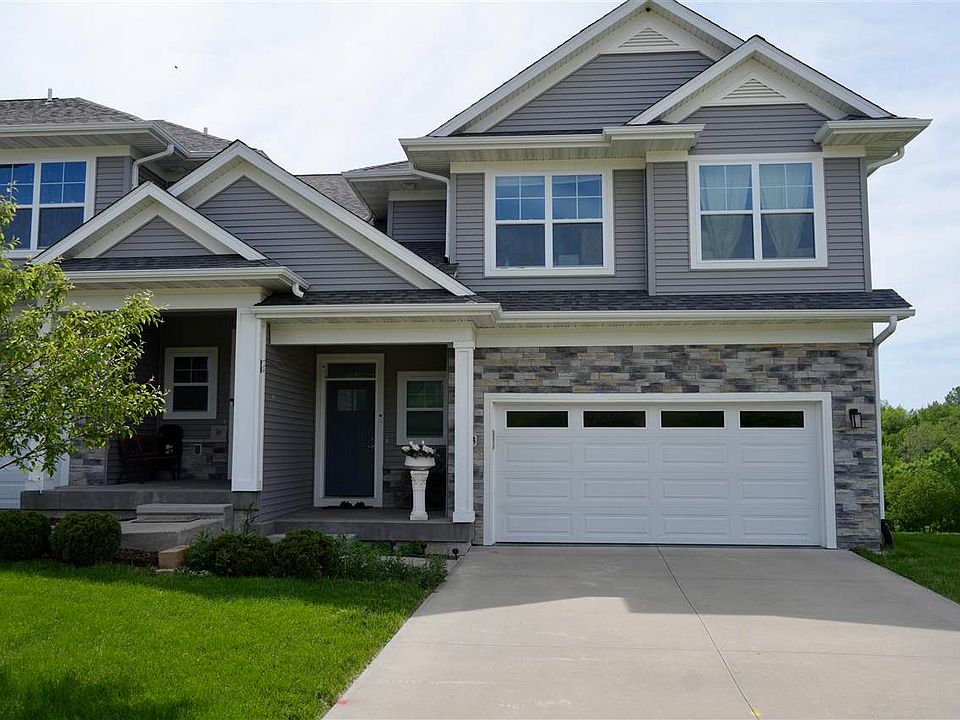 Step into luxury and sophistication at 2223 E Grandview Dr. in Coralville, IA. This an End Unit exquisite 4 bedroom, 3 bathroom townhouse, built in 2018, is a masterpiece of modern elegance.  As you enter, you are greeted by an open foyer with soaring 9-foot ceilings that create a sense of grandeur and space. The main level boasts a gourmet kitchen, featuring stunning Quartz countertops, sleek Stainless steel Appliances, and a convenient breakfast bar for casual dining.  The master suite is complete with a private bath, double vanity, and a spacious walk-in closet. Each bedroom is meticulously designed with attention to detail and style. Step outside onto the deck off the main level to enjoy the fresh air and beautiful views, or head to the rooftop for a stunning panoramic vista of the surrounding area. The walk-out basement provides additional living space and access to the lush backyard.  Conveniently located near the Iowa River, a dog park, and a gym, this townhouse offers the perfect blend of luxury living and practical amenities. With a deep 2-car garage providing ample car and storage space.