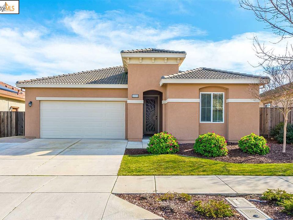 Immaculate SINGLE STORY shows like New! Contemporary and Clean on a Corner Lot, this Home has 3 Bedrooms, Plus a Flex Room. Large Kitchen Family Room Combo plus Covered Patio is Perfect for Entertaining. Located near a brand new school for easy, no-driving drop off and pick up. Backyard Shed, Play Area and Community Lifestyle with Sparkling Pool, Tennis, Ball Fields, Trails, Playground, and a Lake with Kayaks available for additional Summer Fun! This home does not disappoint.