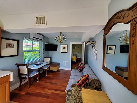 Apartment is spacious & comfortable, completely renovated. A great place to work or relax and unwind. Suite is located in Hollywood and is fully equipped. Queen size bed, couch, dining area including table, bathroom with tub & shower. Dedicated a/c, Wi-Fi & cable TV. It is equipped with a kitchen for cooking including full size refrigerator, range and oven, toaster oven, and coffee maker. Parking & coin laundry are both available onsite. Access to shared outside seating area.
