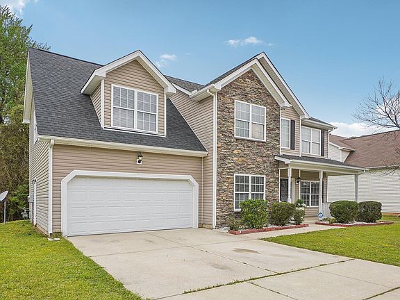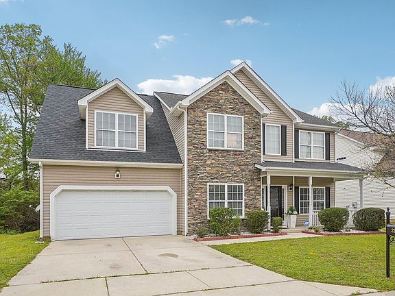 Step into your beautiful blank canvas— a space just waiting for your personal touch to make it truly feel like home. From the moment you walk through the front door, you're welcomed by spacious living and dining areas, perfect for entertaining guests or hosting unforgettable family gatherings. The open-concept kitchen seamlessly flows into the breakfast nook and cozy family room — ideal for staying connected while cooking, relaxing, or helping with homework. The kitchen features stainless steel appliances, and the refrigerator will convey! The separate laundry room on the main floor makes chores a breeze — and yes, the washer and dryer convey as well! Making this home truly move-in ready! Upstairs, retreat to your primary ensuite complete with a jacuzzi tub, separate shower, double vanity, and a walk-in closet you'll absolutely love. Plus, 3 additional bedrooms and a full bath, giving family and guest their own space to enjoy. The oversized bedroom is a flexible space ready to become your hobby room or kid's playroom, gym, home theater, or man cave — whatever your family needs! Roof replaced in 2023. Just 15 minutes to downtown Raleigh. Easy access to I-540, shopping, and dining. A perfect blend of comfort, location, and value — this home is ready to welcome you! Virtually staged to help you imagine the possibilities!