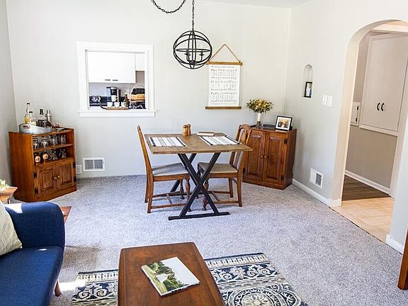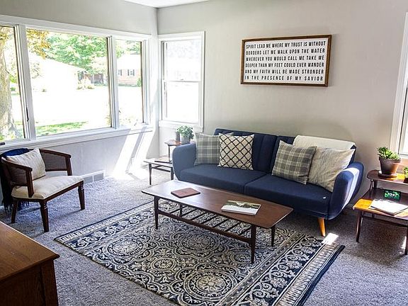Superb 3 bedroom ranch. Welcoming curb appeal and covered front porch lead to spacious front foyer w/closet. There are two living spaces including a large, window filled (3 sides of natural light) family room w/natural fireplace, plus a separate living/dining combo. The kitchen (refreshed and updated flooring) offers good counter/cabinet space including some neat built-ins for extra storage. There are 3 bedrooms (each tastefully repainted), and a tiled full bath with vanity and shower/tub combo. The yard adds extra outdoor space w/back patio and b/i grill. The 2.75 car detached, heated garage is a huge plus. Many updates/upgrades gives a feeling of newness including all new carpet, newly painted interior, and furnace in 2021