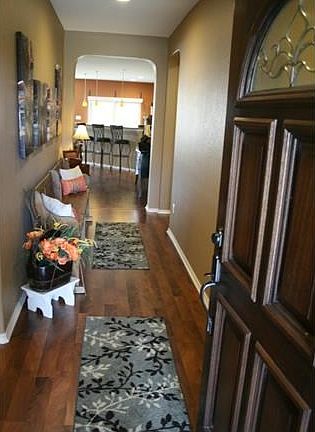 This meticulously maintained and upgraded, nearly new, home features 3 bedrooms and 2 full baths. The entry opens up to the living with beautiful wood laminate flooring, tile in wet areas and upgraded carpet/pad in the bedrooms. A few upgrades include: raised vanities, 42 inch upper cabinets in Maple, wood entry door with storm door, blinds, custom paint colors, outside holiday light wiring package, elongated toilets, upgraded lighting throughout, covered patio and sliding door plantation shutters.