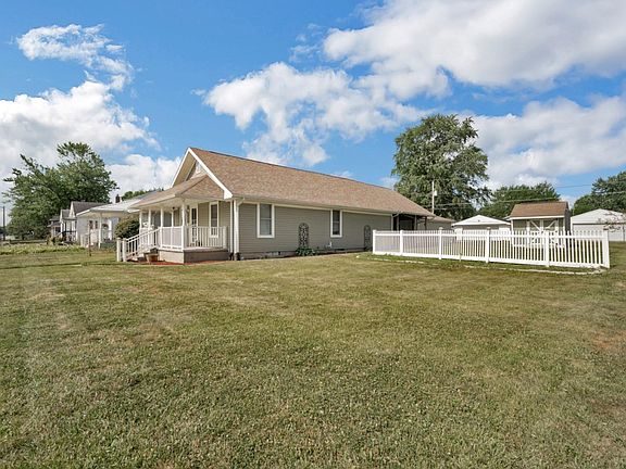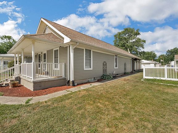 This very adorable and cute home is nestled on two city lots and offers 2 bedrooms, 1 full bath, a cozy covered porch, and a 2-car garage! Open the front door to a very welcoming living area with hardwood flooring that opens to the dining room. Kitchen is spacious and is adjacent to the charming laundry room. Unfinished basement is very clean and presents usable space! The back covered porch is perfect for entertaining or to just relax on. Other features: roof is 3 yrs old, siding and windows have been updated, water heater is newer, shed, and much more!