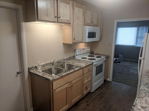 2 living rooms and 2 full bathrooms. Newer bathrooms and kitchen. Includes a gas fireplace, carpet, a lot of cabinets in the kitchen, carport, fenced yard. Updated windows and a new roof. Covered concrete patio in back with a place for a fire pit. The house is clean and ready for a new tenant. It rents quickly and a background/credit check is mandatory for all. Complete an application and we can set up a showing. Move in tomorrow! All utilities paid by tenant. 1 Cat or a Dog under 25 lbs allowed for $50 per month.