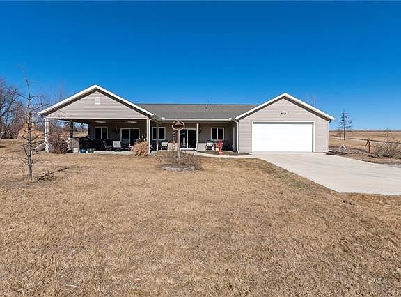 Beautiful home on 93.6 acres m/l. This 8 year old home features 2 bedrooms, 2 bathrooms, large covered patio, and a 2 car garage. The home has granite countertops, custom cabinets, and an open floor plan. Immaculate condition and ready to move in. The outbuilding has electric, concrete, a bathroom, an office, 3 car garage and covered patio. Approx 20 acres of cropland and the remainder is timber. There is a stream and a pond. Hunters Delight!! Don't wait, call today!