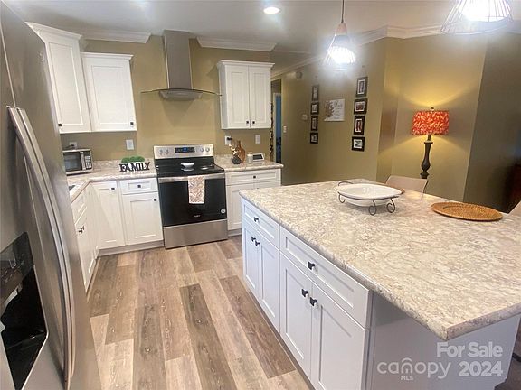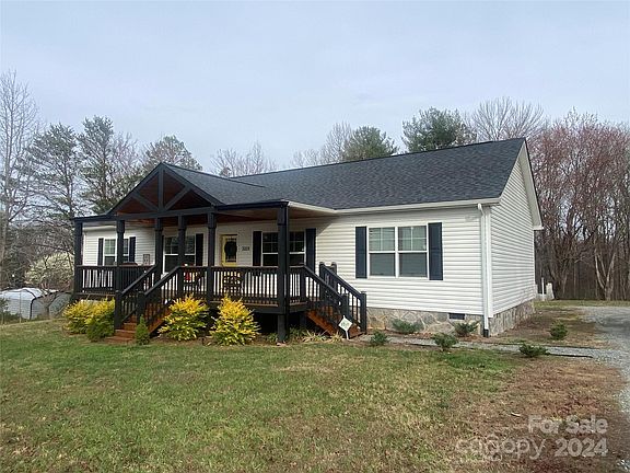 Must see this 4 BR 2 Bath split bedroom modular home on level 1.01 acre lot. Open floorplan great for entertaining plus large 8x16 covered front porch great for morning coffee plus 8x12 rear deck. Kitchen island w/stainless steel range, refrig, dishwasher and range hood. Large primary suite w/walk in shower, double vanity and soaker tub. Pull down stairs to the attic, great for storage plus beautiful hand laid stone foundation and short drive to Hickory or Morganton minutes to Lake Rhodhiss. Home boast 2x10 floors an 2x6 ext walls to allow extra insulation making home very efficient. This Home will not last long at $295,000! Give me a call today for a showing!