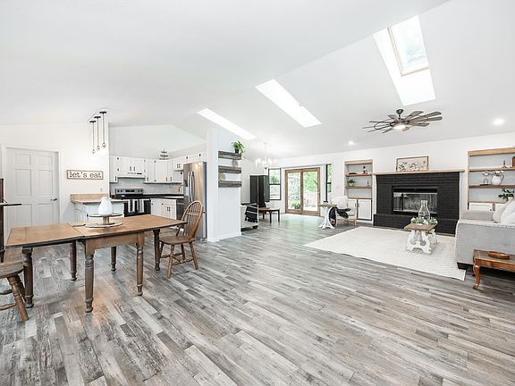 Welcome home to this beautifully renovated home! Renovations include all new flooring, new appliances, new landscaping, and an encapsulated crawlspace. A 3 bed, 2 bath home, this property features plenty of space inside & out. The open floor plan features a spacious kitchen-dining room combination and vaulted ceilings with gorgeous skylights! You will enjoy sitting by the wood-burning fireplace in the living room creating a warm atmosphere on brisk fall/winter nights. You'll find a fenced backyard with a large deck and shed just off the living room that provides plenty of space for outdoor activities. Home is situated on an extra-large lot. There's a spacious two-car garage for your vehicle and storage needs. Surveillance equipment in use. HOA Fee is $18/monthly and covers swimming pool, tennis court & clubhouse!