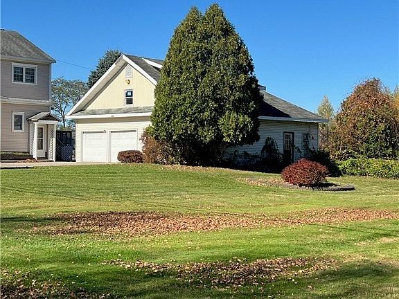 STURDY, STRONG AND LOVED THIS SPACIOUS COLONIAL SITS ON ALMOST AN ACRE AND OFFERS ALL THE SPACE ANYONE WOULD EVER NEED AND STILL HOLDS SOME CHARM AND CHARACTER OF DAYS GONE BY.....UPDATES HAVE BEEN ADDED OVER THE YEARS. BEAUTIFUL HARDWOODS THROUGHOUT MOST OF THE HOME*SPACIOUS LIVINGROOM WITH FIREPLACE*FRENCH DOORS FROM THE LRM LEAD TO THE SUNROOM*FORMAL DININGROOM*DEN W/BRICK WALL FRPLC WITH ACCESS TO THE PRIVATE DECK*KITCHEN OFFERS GREAT STORAGE + ALL APPLIANCES & A PANTRY*1ST FLOOR BEDROOM WAS CONVERTED TO A LAUNDRY (WASHER/DRYER STAY)***EXQUISITE OAK STAIR CASE TAKES YOU TO THE SECOND FLOOR WHERE YOU WILL FIND 4 GOOD SIZE BEDROOMS PLUS AN OFFICE AND A SPACIOUS SPA BATH COMPLETE WITH A JETTED TUB, RECESSED LIGHTING, BIG VANITY AND TILE FLOORING**HARDWOODS AND OAK TRIM SHOWCASE THESE ROOMS*EFFICIENT IN FLOOR HOT WATER MULTI ZONE HEATING THROUGHOUT THE HOME. MANY WINDOWS HAVE BEEN REPLACED.....INSULATION WAS ADDED....ABUNDANT GARAGE SPACE....3 BAYS PLUS A WORKSHOP**ADDIIONAL STORAGE AND A 2ND FLOOR LOFT AREA THAT HAS SO MANY USES THINK "STUDIO", GARAGE IS PLUMBED FOR A BATH ALSO. THERE IS A 200 AMP UNDERGROUND ELECTRIC SERVICE THAT SERVICES THE HOME AND GARAGES....THERE IS ALSO A SPRINKLER SYSTEM ON PART OF THE LAWN AND IS TURNED OFF BUT HAS NOT BEEN USED IN A FEW YEARS. L-O-W TAXES AND LOW UTILITIES (AVERAGE IS $200.00 A MONTH) GATHER YOUR DECORATING IDEAS AND LET THE FUN BEGIN IN MAKING THIS GEM YOUR NEW HOME! GREAT COUNTRY LOCATION MINUTES TO AUBURN AND 35 MINUTES TO SYRACUSE. THIS HOME IS IN GOOD CONDITION. MISSING SOFFITS TO BE INSTALLED PRIOR TO CLOSING. OPEN SAT AND SUNDAY THIS WEEK!