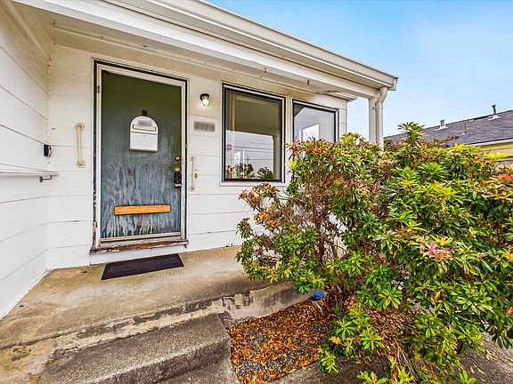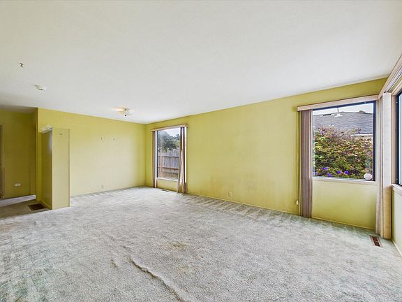 A compact house on a city lot in Eureka. This mid-century home is ready for a new owner. The front door enters onto the living room with the kitchen off to the left, a bathroom behind, and two bedrooms toward the back of the house. A utility room off the kitchen takes you to the attached garage. There is a small separate shop building out back with a rollup door.