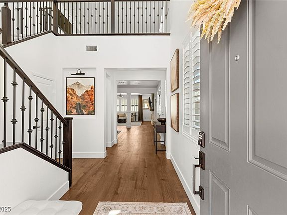 Beautifully upgraded home in the heart of Inspirada! Featuring over 3,000 sq ft, this two story, 5 bedroom home welcomes you with luxury vinyl plank flooring through the downstairs living area. Walls have been removed to open the floorpan making entertaining a breeze! Gourmet kitchen with quartz counters and stainless steel appliances overlooks the family room with custom stone feature with fireplace. Downstairs bedroom with ensuite bathroom. Large loft and 4 bedrooms upstairs including a spacious primary. Sitting on a corner lot, backyard features a stunning pool and spa with water features. Community full of great amenities including basketball, tennis, pools, and much more!