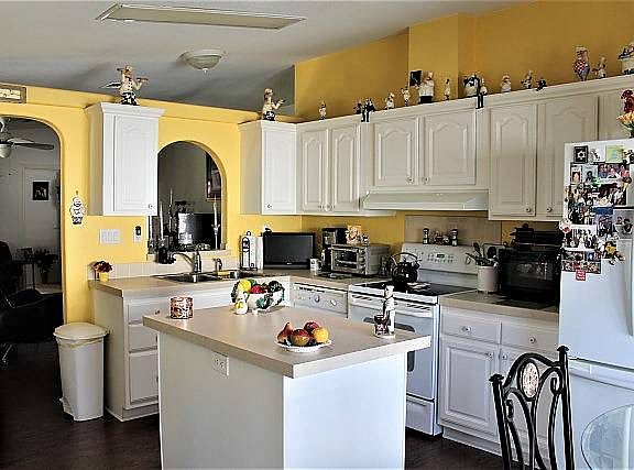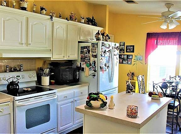 3 BR 2 BA 1344 SQ FT, Partially furnished. Open, Split floor plan. Newer appliances. Windowed lanai, professionally landscaped, Immaculately kept and maintained. Double carport plus golf cart driveway and golf cart garage. Large eat in kitchen with loads of cabinets. Spacious Master bedroom large enough for a king sized bed. Double sink vanity in master bath, plenty of walk in closet space. This home has a separate laundry room. Great front porch area. New roof with Warranty. New AC in 2020
