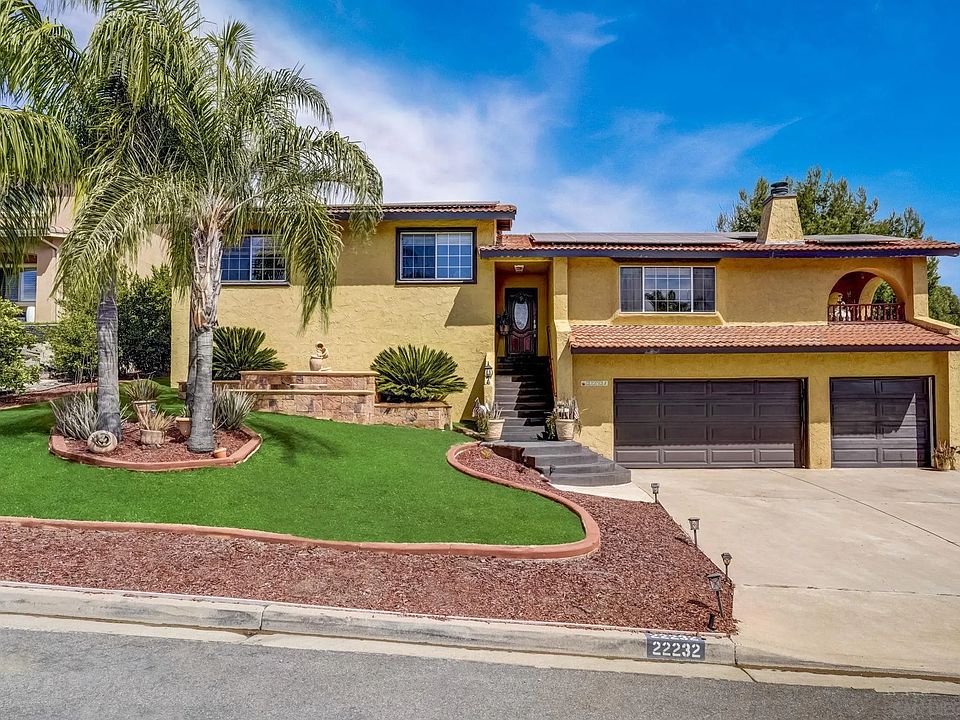 Experience luxury living in this exquisite Tuscan-inspired haven, where serene lake, mountain, & palm vistas greet you. This 5-bedroom, 3-bath multi level masterpiece boasts a spacious living room enriched with laminate flooring, crown molding, & a grand fireplace. Elegance meets functionality w.French doors opening to a Sausalito-tiled veranda & the master suite, each offering unparalleled views. Your culinary adventures are catered for in a kitchen adorned w/granite counters, a SS double oven, & a walk-in pantry, all complemented by enchanting lake views. Relish in the comforts of the master suite, complete w/dark wood floors, dual sinks, & a rejuvenating walk-in shower. With 32 solar panels & a whole house fan, your eco-friendly aspirations are met. Embrace the quintessential Southern California outdoor lifestyle with two patios, a verdant backyard, & provisions for a future jacuzzi. But the pièce de résistance is the expansive granny flat, a potential goldmine for those seeking a supplementary income. Its independent entrance ensures privacy, & with its own patio & backyard, it promises a self-contained sanctuary. Revel in its amenities: a full kitchen w/quartz countertops, a fireplace flanked by built-in bookshelves, & a Euro washer/dryer. Every corner whispers opulence, from the bamboo floors to the thoughtful designs. An investment in comfort. Experience resort-style living, 5 min. from the lake, in this secure, amenity-rich complex. From boating to tennis, our gated community offers a pool, spa, pickleball courts, an equestrian center, a golf course & much more!