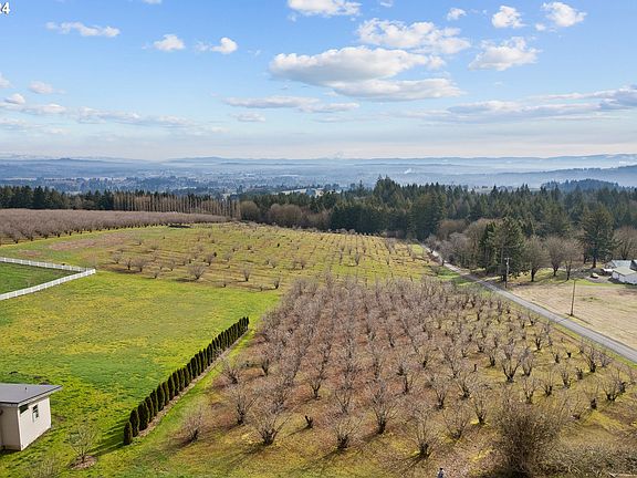 Mt Hood, Mt. St. Helens & city lights view on rare 36+ acre site w/ 1904 2-story farmhouse, 2bd, 2ba, kitchen, dining, sunroom, utility rm, pellet stove, 500G propane tank, newer septic tank & drain field in 2012, outbuilding w/ power & concrete floor, garden shed & well pump house. Currently hazelnut orchard. Suitable for grapes, livestock or other. Property has multiple potential views and gentle slope means all acreage is useable. Located just minutes out of Sherwood's developing community! Bring your dreams for this special property!