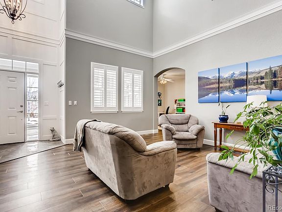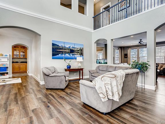 Incredible 2-story nestled into a quiet cul-de-sac in the picture-perfect Saddle Rock Golf Club community! Soaring ceilings and big, bright windows galore make a dazzling entrance into this home and highlight a flowing open floorplan resplendent with natural light! Sparkling gourmet kitchen is sure to impress and adjoins formal dining through a butlers wet bar on one end and opens to the cozy family room with gas fireplace and in-wall surround sound on the other for easy entertaining! A lovely formal living area off entry, a coveted main level bedroom or study adjacent to a quality full bath, plus a laundry/mud room complete the main level. Brilliant upper level offers bonus loft space for a home office, two bedrooms serviced by a full jack-n-jill bath, an additional bedroom with an ensuite 3/4 bath, and a sensational master suite featuring a spa-like remodeled 5-piece bath. Many phenomenal finishes and upgrades throughout, such as a whole house vacuum, humidifier and in-vent air purifier, new energy efficient Evolution Series HVAC equipment including two furnace and A/C units each for the attic and basement, new hot water heater, new roof, gutters and downspouts, and upgraded insulation. Home additionally boasts fantastic lighted built-ins and art niches, ample storage in basement and TWO attached garages, idyllic backyard with a covered deck, paverstone patio, pellet grill/smoker, propane firepit and 5-person hot tub PLUS the homes solar power will save loads of money on your energy bill! Phenomenal location within the prestigious Saddle Rock Golf Club community boasting owner access to a community pool, clubhouse, tennis and basketball courts, and within perfect proximity to Saddle Rock Golf Club, parks, trails, E-470, I-25, DTC, Aurora Reservoir, Cherry Creek State Park and Reservoir, highly acclaimed Cherry Creek schools, shopping, dining, and so much more. Dont miss this chance to make this exceptional Saddle Rock gem your own!
