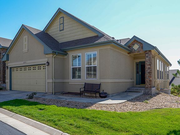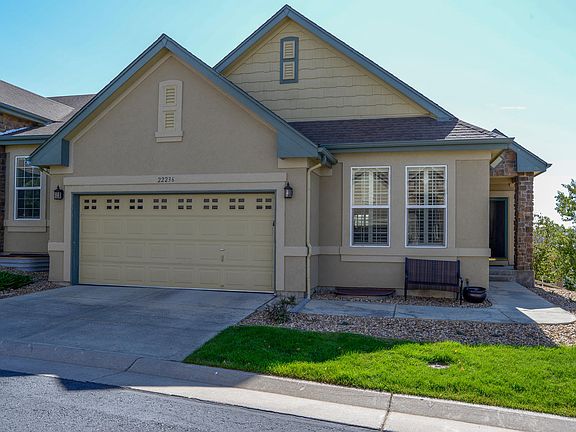 Enjoy low maintenance living in this luxurious ranch style home with a finished walkout basement! Glorious mountain views are exquisite from the deck. This desirable gated community is perfectly situated in the Saddle Rock Golf Club near shopping, amenities, Cherry Creek schools and E470 for convenient transportation. You will love the freedom of this “lock and leave” duplex patio home. It is impeccably maintained with designer touches throughout. Wide plank laminate wood flooring, plantation shutters, upgraded lighting and towering ceilings create a great ambience. French doors lead to the main floor office. Arched walls flank the formal dining room. A gas fireplace surrounded with granite is the heart of the great room. It is also wired for surround sound. The stunning kitchen features 42” cherry cabinets and slab granite counter-tops. The over-sized island/breakfast bar and dine-in nook provides ample room for casual meals. All kitchen appliances are included, and the refrigerator is brand new. Retreat to the main floor master with laminate hardwood flooring and vaulted ceilings. Tile and travertine grace the counter-tops, soaking tub and large shower. There is a second main floor bedroom, full bathroom and main level laundry with cabinets and a utility sink. The high quality finished walkout basement provides even more living space as well as dedicated entertainment areas. The massive family/recreation room easily accommodates the included pool table, custom pub-style bar and the media room equipped with an Epson overhead projector, Elite Screens 100” projection screen and surround sound. The basement also includes the third bedroom and full bathroom, a storage room and a spa/exercise area with the hot tub included! Walk out to the covered patio. Wait...there’s more...the deep garage is fully finished with coated floors, a work bench and cabinets. Fabulous design, upgrades and inclusions set this home apart from others! Get inspired! Another "TESTA-monial"