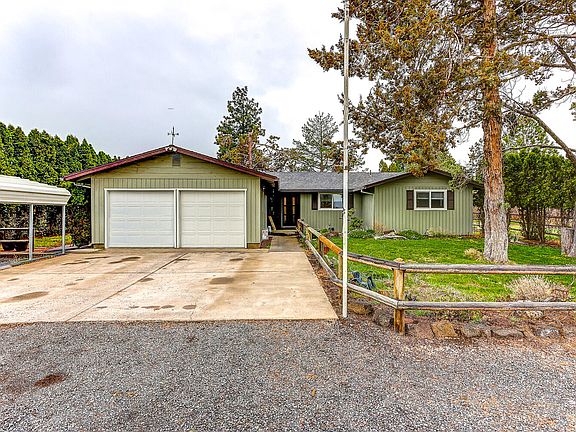 Ranch Home on 5.4 Acres with 3 Acres of COI Irrigation in NE Bend! Single level 1640sf, 3Bd/2Ba home features open Great Room w/large stone gas FP, open dining/kitchen w/garden window, primary bedroom w/access to back deck & private bath w/wood-lam flooring, laundry/mud room w/pantry, attached/insulated 2-car garage w/storage cabinets, upgraded vinyl thermal windows, covered front porch, big covered back deck, detached ~800sf shop & barn, 4 fenced & x-fenced pasture areas, hand lines & power sprinkler included, irrigation pond, Avion water and new septic in 2015!