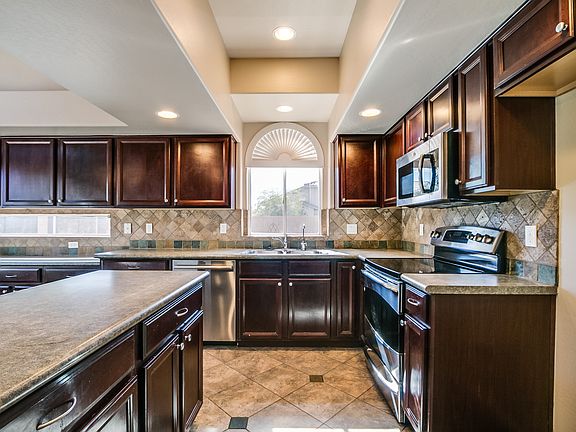 This Sundance home on an oversized corner lot has been upgraded with new carpet, new roof on the back patio, and fresh interior paint! Upon entry, the living room and kitchen lure you in with soaring ceilings and pot shelves. The eat-in kitchen is outfitted with stainless steel appliances, a tile backsplash, and a prep island, and a half-wall allows views into the sunken family room with a brick fireplace, and sliding glass doors leading to the covered patio and backyard. Head upstairs to find the bedrooms. The Master suite boasts a spacious walk-in closet and an ensuite bath with a garden tub and shower combination. Conveniently located two miles from the Walmart Supercenter, and dining and shopping options at Sundance Towne Center. Also near I-10 access and the trails at Skyline Regional Park. All Opendoor homes come with a 30-day satisfaction guarantee and one-year premium warranty. Terms and conditions apply. Open House: Mon-Sun, 6am-9pm