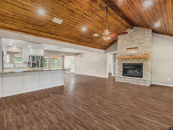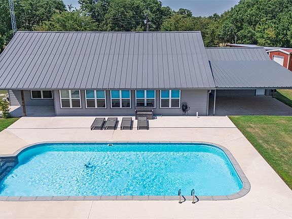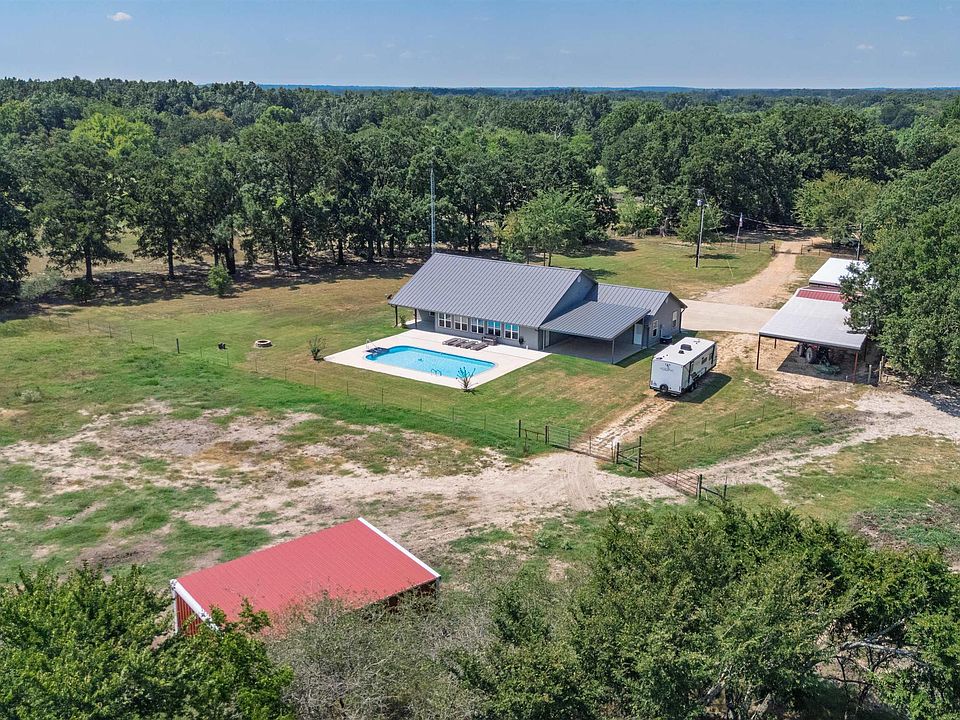A winding drive takes you to a secluded sanctuary on a beautiful AG-exempt 21.15 acres of open land, a well-maintained home, in-ground swimming pool, workshop and more! Discover a place that is ready for livestock, gardens, or a place to unwind. Enjoy family gatherings under the large covered outdoor living space or on the oversized open patio beside the pool. Inside the 23x15 vaulted living room, a wood-beamed ceiling with recessed lights and stone gas-log fireplace creates the perfect place for nights with friends or family. The open floor plan leads to the kitchen with sleek granite countertops, custom white cabinets, island, peninsula with breakfast bar, double ovens, cooktop stove, subway tile backsplash, and stainless steel appliances. For additional living space, enjoy a 31x10 sunroom that overlooks the pool and the 50x36 open patio. Retreat to the primary ensuite with trey ceiling, ceiling fan, granite countertops, double sinks with a vanity area, separate walk-in shower, and soaking tub. With a split bedroom floor plan, the guest bedrooms share a full bathroom. Additional bonuses for this 2019-built house include energy efficient spray foam insulation, standing seam metal roof, Hardie siding, recessed lights, and luxury vinyl plank flooring. Outside, take advantage of the 20x17 metal shop building with power, 30amp RV power, 220 outlet for a welder, and water. Extra covered parking, with 112x25 feet, provides a place to park farm equipment, small tractors, cars, or etc. Sit outside and listen to the birds or watch amazing sunsets in this quiet country setting with open skies. Located just minutes from Sulphur Springs, you’re close enough for supplies but far enough away from city noise or traffic. Bring your animals and country dreams to this turn-key rural property!