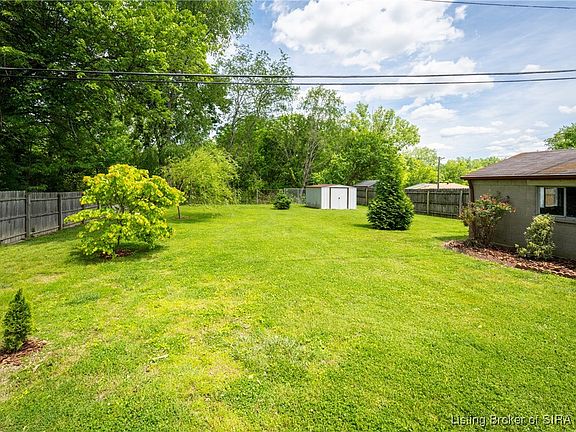 Welcome to your urban sanctuary! This remodeled ranch style home offers 4 bedrooms and 2 full baths and a fully finished basement with tons of privacy! The large lot is nearly half an acre with treeline views and sounds of the creek in the back! The rear screened in porch is perfect for entertaining and enjoying the nature around you all while being right in the city with convenient access to all of Southern Indiana and Louisville! Oversized 1 car detached garage offers parking, storage, and a workshop area! As you step in the front door of the home, you'll love the space of the living room and the original hardwood floors that have been refinished! The beautiful hardwood floors continue through all 3 bedrooms on the main floor! Fresh paint! New light fixtures! Down the hallway are the 3 good size bedrooms and the renovated full bathroom! The updated eat in kitchen offers plenty of cabinet space and the appliances will remain with the sale! Continuing down to the fully finished basement, there's so much space! Huge family room with brand new carpet and custom storage closets! The full bathroom features a custom ceramic tile shower and is so nice! The potential 4th bedroom(no egress) is in the basement along with a huge laundry room and storage area with ceramic tile! The basement could be a private primary suite! This home is ready to move in! The HVAC is only 3 years old and water heater is 5 years old! Call today for a private showing before it's SOLD!