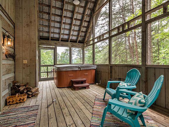 Beautifully remodeled log cabin AKA ''El Dorado'' with high ceilings and open plan. New flooring, granite tops in kitchen and bath, new stainless appliances, updated lighting & more! The exterior has a really cool rustic-chic look with metal roof. Enjoy relaxing in the hot tub on the screened porch or kick back in the rocking chairs on the covered deck! Owner has had success in a short period of time using as a rental cabin.