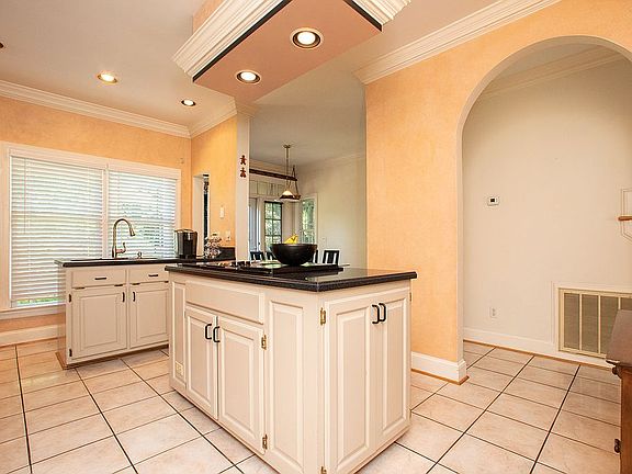 Absolutely beautiful former "Parade of Homes" home with many extras. Tray ceilings in the dining room and master bedroom, Jenn-Air downdraft range with grilling burner, custom cabinets with wine rack and glass holder, Corian counter tops with built-in sink, freshly refinished wood floors and tile kitchen floor. 9 ft. ceilings downstairs with the open floor plan makes the home feel so much larger. Super convenient floor plan makes for easy living. Trex deck is great for entertaining and enjoying the grounds filled with flowering plants and trees. Gardener's paradise with so many plantings in place. Gas logs in family room is a lovely feature. The second floor has a large Master Bedroom en suite with pedestal sinks, large closet, and hand painted sky scene on the tray ceiling. Two other bedrooms on this floor are spacious and have nice closets. One has an adorable alcove with built-in mirror. The third floor boasts a large bonus room great as a TV room, kids playroom, or a home office.