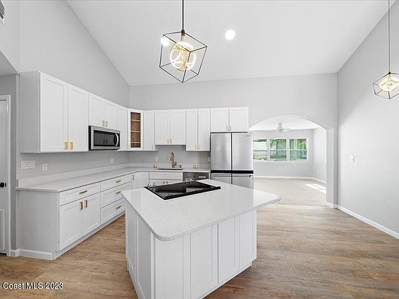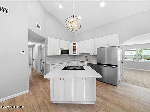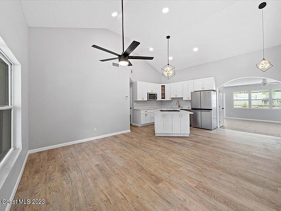 Located right down the street from EFSC, this completely remodeled pool home has four bedrooms and two bathrooms. As you enter the home you are greeted with vaulted ceilings and a brand new kitchen. The home features a split floor plan with an extra living space in the back as well as indoor laundry. New updates include roof, AC, flooring, kitchen, bathrooms, windows, hurricane shutters, and more.