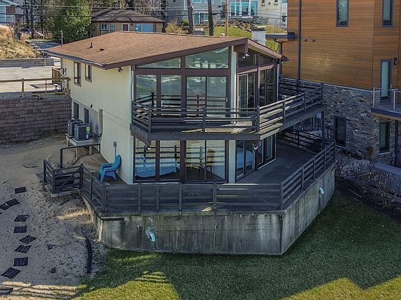 Incredible opportunity to own your slice of lakefront paradise right here along the breathtaking shores of Long Beach. Spectacular panoramic views of Lake Michigan fill this 4 Bedroom, 2 Bathroom charming home with an open floor plan, including exposed beams and vaulted ceilings. Main level includes an updated Kitchen, ample cooking space with granite countertops throughout, a Dining Room that flows into the large Living Room complete with a fireplace. Multiple sliding glass doors allow the lake breeze in, perfect for the golden hour sunsets over the lake. Lower level includes 3 Bedrooms and an additional Recreational Space that can also be a 4th Bedroom. 60 feet of frontage on Lake Shore Drive and tied into a well enforced upgraded seawall. Plenty of additional rare to find yard space between the home and seawall, ideal for a fire pit and lounging area. If you are looking to create memories at the lake house that will last a lifetime, look no further than 2224 Lake Shore Drive!