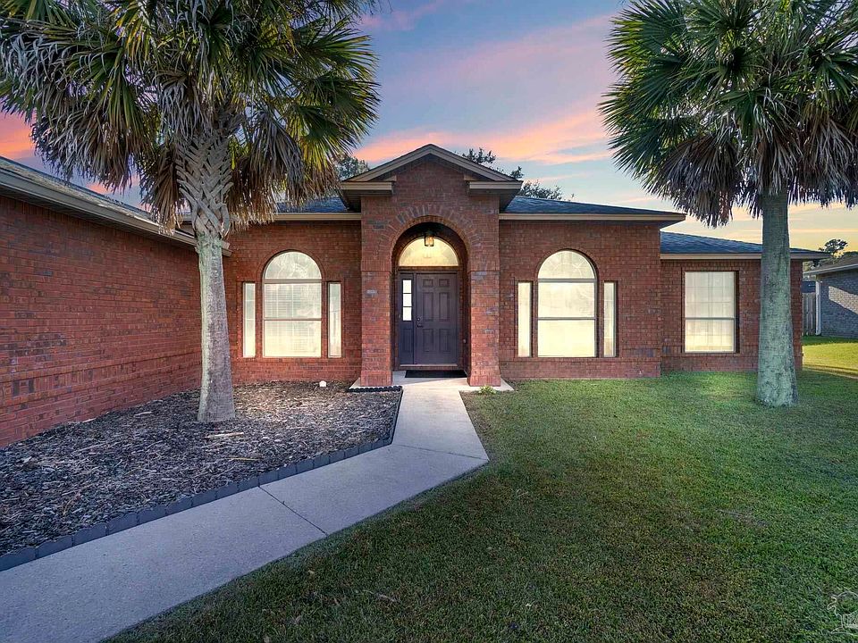 Beautiful, brick 4/2 home in Glenview Estates! Updated in 2017; Lots of natural sunlight into the open, remodeled kitchen that boasts laminate wood planking, granite counter tops also on the island, newer fixtures, subway tiled backsplash and stainless-steel appliances, walk-in pantry and breakfast nook; The spacious living room with vaulted ceiling and newer light fixtures and plenty of room for all; the wood plank flooring is extends into the formal dining room also; Master bedroom has carpet, newer fixtures, sitting area, two walk in closets and a separate master suite; Master bath has been updated with flooring, double vanities, subway tile, jetted, garden tub and a walk in shower; Three spare rooms have carpet and offer a multitude of functions for your family, such as a guest room, playroom, music room, office; The backyard boasts an extended, covered patio including ceiling fan for comfortable entertaining, privacy fence, fire pit as well as a covered outdoor swing; New water heater Dec. 2022~Drive time--20-25 min. to downtown Pensacola, Pensacola Beaches; check out the school district!