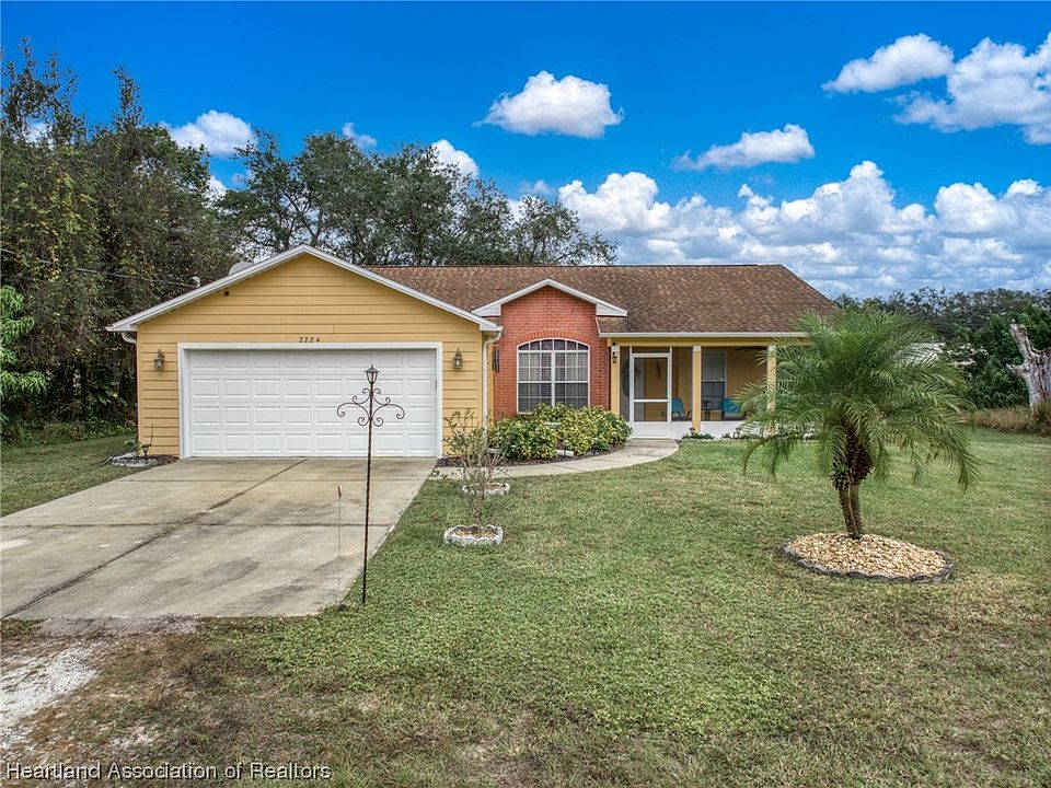 Meticulously well maintained and spotlessly clean home ready for new owners to enjoy located in the highly popular neighborhood of Avon Park Lakes in Avon Park, FL! 3 bedrooms on a split floor plan, 2 full bathrooms, and a huge 2 car garage! Superior curb appeal presented with the custom Hardy Board concrete composite/brick siding, impeccable landscaping featuring freshly mulched garden beds, leaded glass front door, screened-in front porch entryway, and elegant custom arched front window. Frame construction with full brick/Hardy Board siding and neutral colored tile and wood laminate flooring throughout the interior of the home. 11' high vaulted ceilings welcome you into central main living room of the home, which is open to the dining and breakfast nook areas. Generously sized updated kitchen boasts Gorgeous Granite counters, all updated Stainless Steel appliances, 3'x3' bonus pantry, and solid wood cabinetry. You will adore the Primary Suite complete with lighted ceiling fan, custom recessed tray ceiling, double well organized walk-in closets, dual sink vanity, separate fully tiled walk-in shower, and soak bath in the ensuite bathroom! Both bedrooms on the opposite side of the home include generous amounts of closet space, lighted ceiling fans, and window treatments. Interior 3'x6' utility closet for the washer & dryer, included with the sale of the property. Spacious 23'x22' garage offering a separate climate controlled 6'x8' storage room containing the water heater, and updated HVAC system in 2021! City water & septic tank utilities. Wonderful neighborhood, HOA Fees or Special District Fees do not apply to the residents! There is a clubhouse on the south side of Lake Olivia only a few blocks away from the home owned by the Avon Park Lakes Association that may be used for planned events.