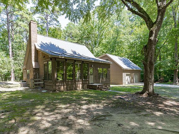 Secluded bungalow with no city tax nestled on a beautiful 2 acre property lot in a prime Apex location! Extensive updates inside and out with character and charm throughout the cedar cottage! New 2018 roof, brand new upstairs HVAC installed in August, new 2023 water heater, water tank & well pump, vapor barrier added in crawl space, grid-less windows and skylights allow natural light to shine in, enclosed front porch, formal dining room adjacent to the spacious kitchen with expansive island, prep sink, double ovens, new floors & fresh paint. Two living room spaces, one showcasing a wood burning fireplace. First floor owners suite with WIC and two additional bedrooms upstairs. Fabulous screened porch links the main house to a 2-car detached garage with 600sqft of future expansion.