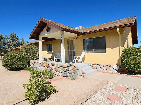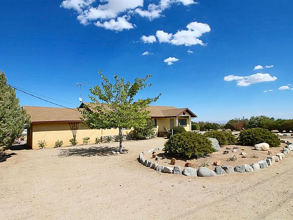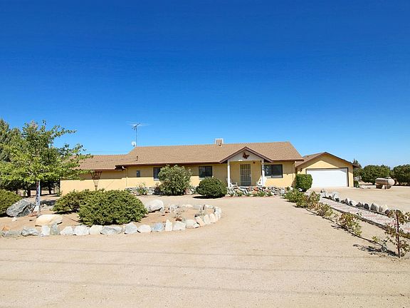 Immaculately kept 3 bedroom 2 bath home located on paved road and situated on a pristine 5 acre parcel. The front half of the property is kept in such a way that you will feel as if you're in your own private oasis. With several different areas to gather you'll love to entertain in this garden like setting. New carpet and newer interior paint on the inside and a brand new roof on the outside make this home truly move in ready. The spacious living room offers space for the whole family and the kitchen is open with plenty of storage and views out to the back of the property. The home also features both a 2 car attached garage with rollup automatic door on one side of the home and a detached 2 garage garage on the other along with a single car detached steel building garage. With views of the mountains to the south and the valley to the north, proximity to hwy 138 for easy commuting and located within the Snow Line School District you'll want to come take a look at this one today!
