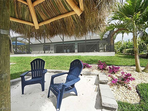 While you are reading this, someone else is looking. Don't miss the opportunity to own this beautiful newer home with a brand-new roof. This could be a great investment for a successful Vacation Rental. The home is tastefully furnished and decorated with gulf access that features 3 bedrooms plus den/4th bedroom and 2.5 baths with over 2000 sq feet of living space. The interior boasts gorgeous white shaker style cabinets in the kitchen that includes a large island, pantry and high-quality stainless-steel appliances. The master bedroom features a tray ceiling, walk in closets, sliding glass door to lanai and pool area. The spacious master bath has dual vanities, stand-alone modern tub, walk-in shower with custom accent tile. Other interior upgrades include: 90-degree slider, living room tray ceiling has flush mount lighting. Diagonally laid tile throughout, custom mirrors and lighting in baths, built-in cabinets in laundry room, wood shelving in closets, glass panel entry door to den, 5 panel doors, and half bath off 3rd bedroom that can be utilized as a pool bath. There is a Tikki Hut on your dock and your own little private beach area. The western exposure and the beautiful landscaping with lots of triple palms and flowering plants gives you the tropical environment for that relaxing time to kick back. The kitchen has everything needed to prepare your favorite meal. All you need to do is pack your suitcase and move in.