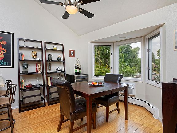 This sunny open floor plan features vaulted ceilings, bamboo flooring and two balconies. AC window units in 3 rooms keep things cool in the summer while the wood burning fireplace keeps you cozy in the winter. Kitchen remodeled in 2016 and both bathrooms remodeled in 2018. Walk-in closet. Extra deep one car garage with driveway. View of the flatirons from the master. Washer and dryer in unit. A few blocks from downtown Boulder and Pearl St. Minimum one year lease. Ask about the discount offered for multiyear leases. With your inquiry PLEASE tell me a bit about yourself and anyone else who will occupying the property, specifically with respect to employment and rental history, thanks! Sorry, not pets allowed by HOA rule. Tenant pays gas & electric as well as internet and cable tv. Water, sewer and trash are included with the rent.