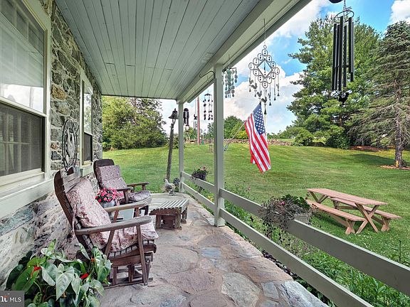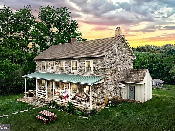 Steeped in history, this Circa 1790 Stone Farmhouse on 10 acres is the perfect getaway from hectic lives complete with wooded acreage, a stream, chicken house and an abundance of nature to watch and listen too! Be warned…you may not want to leave! The entrance to the driveway is marked by a giant sycamore tree – it’s the largest on record in York County! Follow the private lush drive into the parking area near the big rhododendrons and the Summer House showing off its new metal roof. Early photos of the property show a grist mill and stone barn, when J. Larry Miller (father of the current owner) restored the house in the early 1970's he included millstones in the design. As you approach the house you will be greeted with half a millstone at the base of the steps to the front porch, adorned with rocking chairs for your morning coffee or evening glass of wine while being entertained by six pairs of cardinals frolicking from tree to tree. Mr. Miller also built the low stone walls you see from stones found around the property. As you enter the home into the foyer the millstone in the center of the floor will draw your attention along with the 10’ ceilings! From there you can explore in any direction… left to the dining room and back to the kitchen, straight into the library or office space with a Dutch door leading to the backyard (ideal spot for a patio), or right to the family room with a wood-stove fireplace. Don’t miss the powder room discreetly tucked in between the kitchen and the library. Both floors of the home feature rustic beauty in varied width Pennsylvania chestnut or pine floor boards, chair railings, over-sized trim, time period hardware and deep windowsills. On the second floor you will see one full bath with a tub/shower, three nicely sized bedrooms with a bonus room off the primary bedroom that would make a perfect nursery, office, walk-in closet or storage space as used currently. And speaking of storage, there is a convenient stairway providing easy access to the large, dry attic just outside the bathroom. For a home of this age, the plaster walls are in absolutely amazing condition, testimony to the care of the owner!! If you dream of a farmette, this property is the perfect fit! The chicken house can be adapted for rabbits, goats or pigs too, there are two horse stalls and plenty of clear pasture. The garden area in front of the chicken house is already fenced in for your plantings and the back slope makes a killer sledding run and amazing views out the rear windows of the home. For the history buff, a historian concluded that Phillip Shaffer, the original owner of this property fought in the Revolutionary War - as a citizen of Shrewsbury Township, York County. This charming home is located less than 10 minutes from I-83 for easy commuting to York or Baltimore and minutes from local eateries, shopping, Lake Redman, breweries, festivals and the list goes on! Come enjoy the peace and beauty this historic property has to offer!