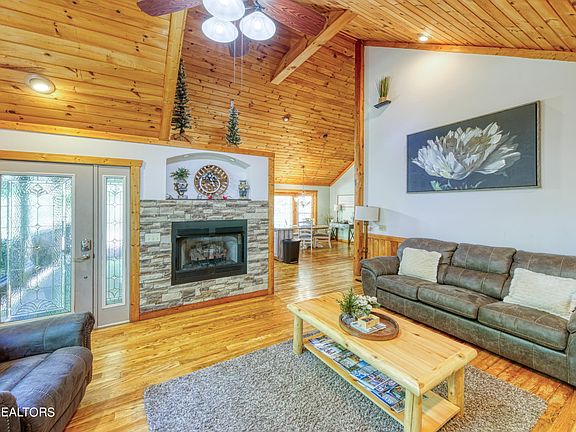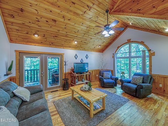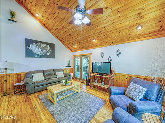 Just off of the Glades Arts & Crafts community in Gatlinburg this cozy cabin is a welcoming retreat! Paved roads all the way easy in and out with the large parking area and no steep roads. You enter the comfortable living area with large window, keeping it light and bright and a beautiful stone gas fireplace adds to the warmth of the room. Kitchen is large with a snack bar and the dining area has a table with room for everyone! Wood floors throughout. There is a bedroom off of dining area that connects to the hall full bath with tub/shower combo. A laundry closet is conveniently located in the hall. Then the main bedroom with access to the covered back porch and hot tub. You can also access the porch from the living area. Main bedroom bath is expansive and boasts a walk-in shower, jetted tub and double vanities! Words cannot express the warmth this cabin exudes---you just have to feel it for yourself! Evidenced by the great rental numbers.
