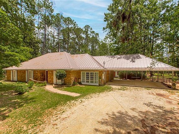 Enjoy the serene country living in Abita Springs town limits all while living on 3 ACRES! Drop a line in the pond, then head to town and enjoy the local farmer's market and festivals Abita has to offer. This ranch-style home features 3 bedrooms and 2 baths, offering a comfortable and spacious living environment. As you enter, you'll immediately be greeted by the soaring ceilings, creating an open and airy atmosphere throughout the main living areas. The expansive ceiling height enhances the sense of space and allows natural light to flow through the rooms. The home features two fireplaces, creating cozy gathering spaces, offering a focal point for relaxation and warmth. The primary bedroom is a true sanctuary, with its serene ambiance and ample room, it serves as the perfect retreat for relaxation and rejuvenation. Beautifully-finished primary bath with rainforest shower. Relax on the back patio, listening to wildlife and taking in the picturesque views this property has to offer. New HVAC and whole house generator, lifetime metal roof are a plus! Adjacent 3 acres and 1.75 acre property available for purchase.