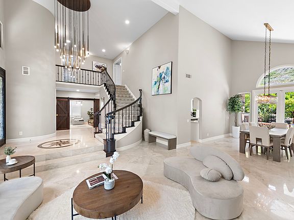 Set in the coveted, guard-gated community of Canyon Crest, this highly upgraded home offers an open floorplan and amenities perfect for entertaining. As you enter the property through the wrought iron front door you are greeted by soaring ceilings and an elegant chandelier. High ceilings in the living room and dining area provide an open airy feeling and a main floor bedroom (currently converted to an office) as well as an upgraded main floor full-bath provide added comfort and functionality. PROPERTY JUST UNDERWENT MAJOR RENOVATIONS TO CONVERT BONUS ROOM INTO SECOND PRIMARY SUITE WITH FULL EN-SUITE BATH! New flooring upstairs! The modern, upgraded kitchen is the focal point of the home. A quartz waterfall island and breakfast bar provide tons of space for dining and cooking. Lighting fixtures and backsplash provide sophistication and new appliances throughout the kitchen top it all off. A conveniently located pantry ensures that you will never run out of space. The kitchen seamlessly transitions to the family room, providing a perfect area to gather. Around the corner you will find a sleek wet bar equipped with a wine refrigerator. Upstairs, you will find the spacious primary suite with a long balcony to relax on. A fireplace, walk-in closet and updated primary bath provide a resort-like experience. Down the hall you will find two Jack and Jill bedrooms with an upgraded full bath shared between the two of them. At the end of the hall you will find the new en-suite bedroom, providing comfort and functionality. Downstairs, the home boasts a 3-car garage and a spacious laundry room with room for side by side Washer and Dryer, as well as tons of cabinets for storage. Outside you will find a hardscaped backyard with a built in barbecue island, fireplace and waterfall. The backyard and front yard are adorned with beautiful fruit trees producing a wide variety of fruits. The property underwent ADDITIONAL UPGRADES in 2023-2024 including brand new Milgard doors/windows, the home was repiped, new AC, new whole home water filtration system, new chandelier, new appliances and MUCH MORE! The 24 hour guard-gated community of Canyon Crest boasts endless amenities including 4 pools, spa, clubhouse, fitness center, tennis and racketball courts, playground, basketball court, BBQ area and much more! The home is located a short distance from Lake Mission Viejo, dining and other amenities. Tenant to pay for utilities. Lease term negotiable.