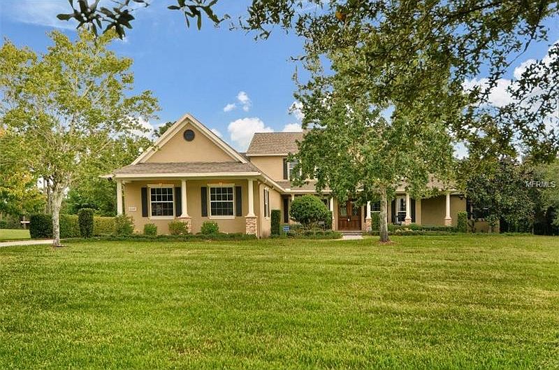 Enjoy this 1.2-acre homesite with extreme privacy. Enter through double entry doors into a grand family room with beautiful stone fireplace and 24-foot ceilings. Gourmet kitchen offers tile backsplash, granite counters, island, rich all-wood cabinets with glass display, new stainless dishwasher, and refrigerator in 2013, electric stove, which can be easily converted to gas. Office with French doors for privacy. Second office upstairs, along with an additional bonus room. Surround sound in bonus room and great room. All bedrooms have custom built-in closets. Owner's suite has sitting area, French doors and a large walk-in closet. Master bath has granite, dual sinks, makeup vanity, walk-in shower and Jacuzzi tub. Incredible saltwater Pebble Tec pool and spa with automatic, self pop-up cleaners. Pacer lanai, outdoor shower, large covered lanai area. Over 1-acre lot with sports court in back. Outdoor kitchen with granite countertop, sink, grill and refrigerator. Automatic generator for entire house. Oversized four-car garage.