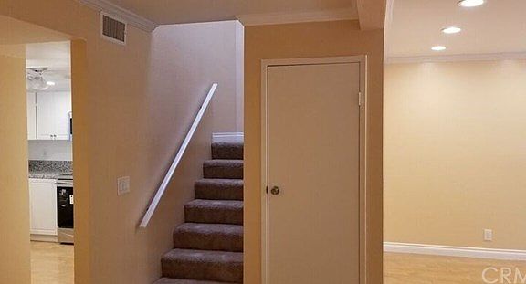 This townhome features remodeled custom built kitchen and bathrooms. The living room has windows and sliding door with a canyon view and ceiling with crown moldings. All windows were recently upgraded to energy efficient dual pane windows and lighting was upgraded to LED lights. New baseboards were installed throughout the interior of the property. Upstairs has vaulted ceilings with high windows and a skylight above the staircase. This home has plentiful storage and inside Laundry. There are two assigned carport spaces and one uncovered parking space. It is conveniently located near schools, parks, shopping and local entertainment. You will enjoy all the benefits of membership in the Lake Forest Beach and Tennis Club.