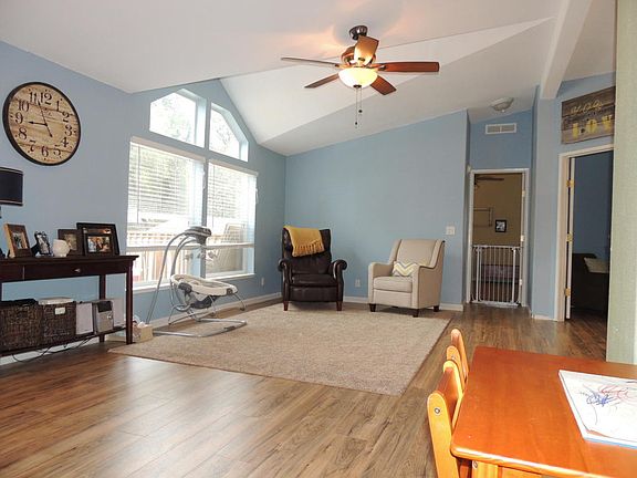Country living on 1+ acres with oversized detached garage and shed. Large covered back porch overlooks fenced back yard. Immaculate home features new flooring, fresh modern paint colors and inside laundry. Kitchen has tile counter tops, island and great working layout! 3 bedrooms plus a den; room for everyone in the family! Indoor laundry w/ sink. Pride of ownership is evident throughout.
