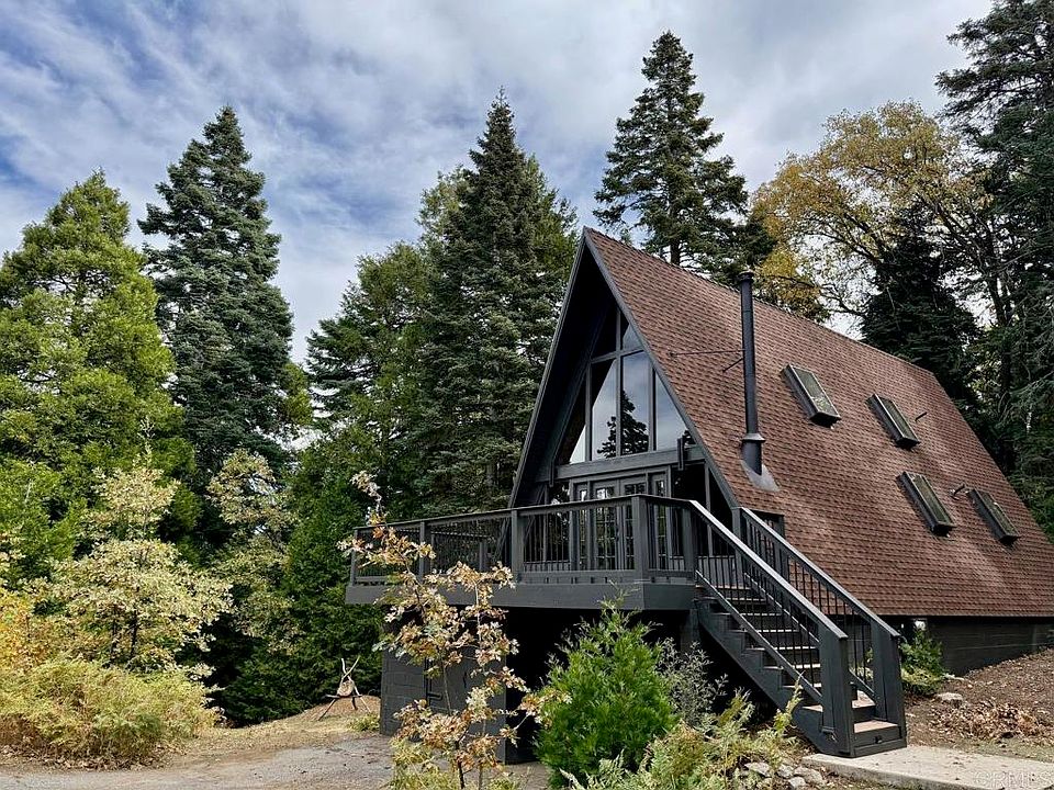 Welcome to Starhaus, a thoughtfully reimagined A-Frame retreat where architecture, nature, and quiet luxury converge. This beautifully remodeled residence is inspired by Japanese wabi-sabi, celebrating simplicity, organic materials, and the subtle beauty of natural imperfection. Muted earth tones, tactile fibers, and curated finishes create a serene and cohesive environment. Furnishings may be included for a truly turnkey experience. Set beneath some of Southern California’s most celebrated night skies, Starhaus offers an immersive escape from city life without sacrificing modern convenience. Reliable high-speed internet supports remote work or full-time living, all while surrounded by forest stillness and natural beauty. The one-acre property, is graced with mature oaks, cedars, and firs, alive with birdsong and seasonal change. In winter, snow falls softly as you gather around the wood-burning stove. Year-round comfort is ensured with an efficient mini-split system providing both heating and air conditioning. A generous balcony invites evening stargazing, morning coffee among the trees, or quiet reflection beneath expansive skies. Outdoors, relax by the campfire, grill under the stars, and enjoy the tranquility of the level, usable fern meadow, which may offer potential for a guest house or additional retreat space. The property includes an over-sized garage/workshop and storage area, ideal for hobbies, gear, or creative pursuits. Currently enjoyed as a limited vacation rental and private family retreat, Starhaus is shown by appointment only to ensure a discreet and personal viewing. Schedule your private tour and experience this rare mountain sanctuary for yourself. You will be glad you did.
