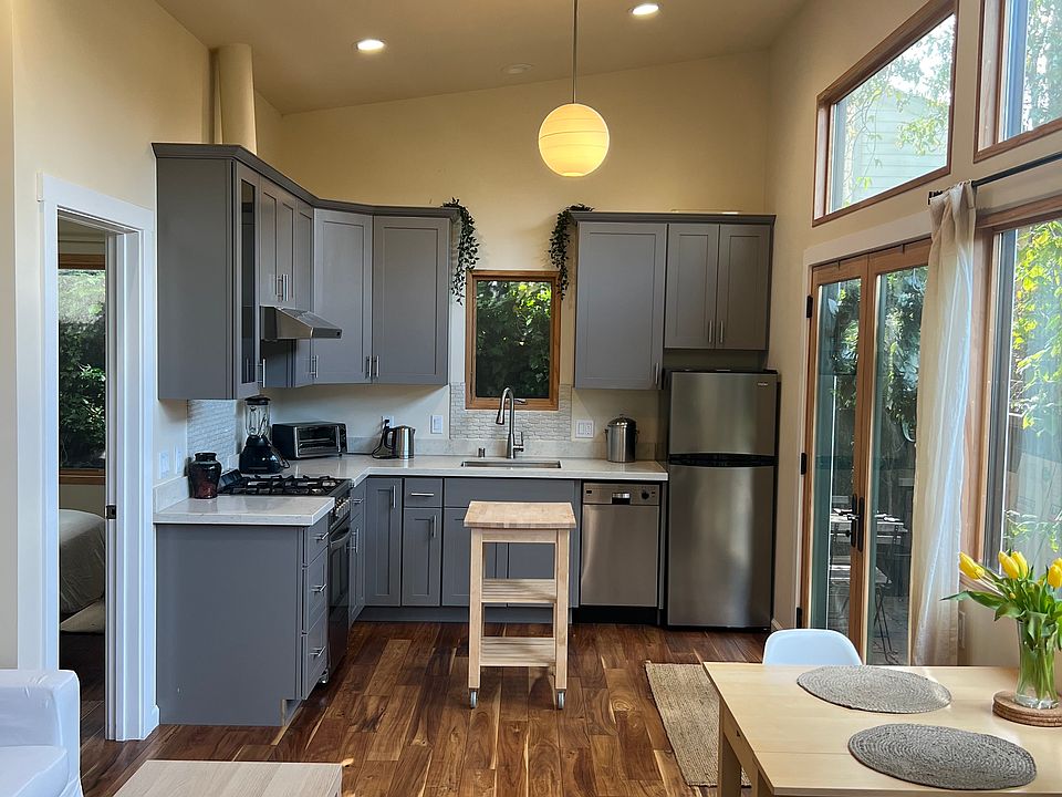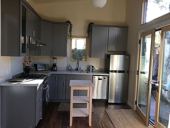 Gorgeous, bright, private & new 1 bd house in West Berkeley A beautiful detached (mother-in-law) 1 bedroom house that's brand new construction. Super charming. It is a 480 sq foot house with great design and all top-of-the-line finishes and appliances. Lush landscaping with fruit trees, flowering vines, like bougainvillea. The house is on a friendly, quiet street in super walkable west Berkeley- walk score 85! We live in the front house ( a married couple in our early 40s, with our 6yr old and a new baby :) and are looking for a tenant-- Lease duration is flexible- 9-12+ months. We are near all the University and 4th street amenities- tons of restaurants, cafes and shops to walk to, and very close to a post office and grocery stores- Berkeley Bowl West or Mi Tierra, or the (awesome) corner shop- Franklin Bros. We are 2 blocks south of transbay bus stop- brings you to SF's financial district in ~30min! We are ~1mile from N Berkeley Bart, and 1.25mi from downtown Berkeley BART & 4 blocks from a bike share dock and 8 blocks from zip-car dock. We also have street parking. We are looking for tenant(s) who are: neighborly, professionally-engaged, easy-going, clean and considerate. We will share the side entrance and between our houses is a majestic redwood. We are looking to have a considerate and friendly relationship with our tenants. The house is perfect for one or two people but not more, and sorry but no pets. Rent includes utilities KEY FEATURES -tastefully furnished - including excellent queen beautyrest mattress -brand new, high quality construction -1 peaceful, quiet bedroom -marble-like quartz countertops -acacia hardwood and tile floors -ground floor -8-12ft. high ceilings -french patio doors -marvin integrity wood-framed windows -sunny private southern exposure patio garden -short or long-term rental -street parking -no pets -no smoking APPLIANCES: All new stainless steel: -dishwasher -gas range w/ hood -garbage disposal -bosch washer/dryer in unit -refrigerator OTHER -utilities included as long as use is within usual amounts, includes electricity, sewer, garbage and water -$2,000 fully-refundable deposit rental applications with a $35 nonrefundable application fee to process credit check. Once application is accepted, will request a $500 fully-refundable deposit within 24hrs to hold lease and this will be applied to the $2,000 security deposit once lease is signed Available May 1st- Your oasis in the city. A nearly new gorgeous, bright, and peaceful detached 1 bedroom ADU/house tucked behind a beautiful 1920s front house. Super charming! It is a 480 sq foot house with a great design and all top-of-the-line finishes and appliances. Lush landscaping with fruit trees and flowering vines. The house is on a friendly, quiet street in super walkable West Berkeley- walk score 85. We live in the front house (a married couple in our early 40s, with our 6 and almost-1yr old daughters). We are looking for a 1yr lease- w option to extend. In the past we've found we work well with people who are: Considerate communicators, friendly, professionally-engaged, easy-going, clean and respectful. We are looking to have a friendly neighborly connection with the people who live in the 'cottage' as we call it. We share the side gate entrance and between our houses is a majestic redwood. We are near all the University and 4th street amenities- tons of restaurants, cafes and parks to walk to. Strawberry creek and Hidden cafe are a 12min walk. Local grocery stores- Berkeley Bowl West or Mi Tierra, or the corner shop- Franklin Bros. We are 2 blocks south of a transbay bus stop- brings you to SF's financial district in ~30min. We are ~1 mile from N Berkeley Bart, and 1.25mi from downtown Berkeley BART & 4 blocks from a bike share dock and 8 blocks from zip-car dock. We also have street parking. The house is perfect for one or two people but not more, and sorry but no pets. Rent includes utilities (as long as there's no out of the ordinary bump in usage). KEY FEATURES -high quality, tastefully modern minimalist furnishings - including excellent queen beautyrest mattress -1 peaceful, quiet bedroom w comfortable queen sized bed -marble-like quartz countertops -acacia hardwood and tile floors -walkin closet -8-12ft. high ceilings -french doors onto your own sunny, private, southern exposure patio garden with a cafe dining table and 2 chairs -marvin wood-framed windows -flexible rental duration -street parking -no pets -no smoking APPLIANCES: All new stainless steel: -dishwasher -gas range w/ hood -garbage disposal -bosch washer/dryer in unit -refrigerator OTHER -utilities to be included in rent as long as use stays close to historic levels, these include: wifi, gas, electricity, sewer, garbage and water. -$2,000 fully-refundable deposit If you're interested please let us know about yourself and we can plan a time to show it to you. The rental application (requires $35 nonrefundable application fee to process credit check). Once application is accepted, will request a $500 fully-refundable deposit within 24hrs to hold lease and this will be applied to the security deposit once lease is signed. thank you!