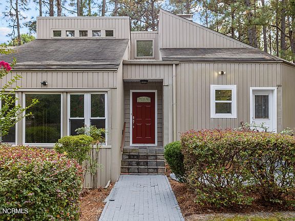 New price! Mid-Century Modern beautifully situated on over a half an acre lot, overlooking the third hole of the Whispering Woods Golf course. Instantly feels like you have arrived home when pulling into the circular driveway. Interior features an open floor plan with an abundance of natural light and panoramic views from every room! Kitchen has lots of cabinet space, granite counter tops, stainless steel appliances and a large island. Recent upgrades include extensive landscaping, new LVP flooring, new fixtures and newly painted throughout. Great location with close proximity to shopping, Thagard Lake, public beach's, parks, walking trails and the iconic village of Pinehurst!