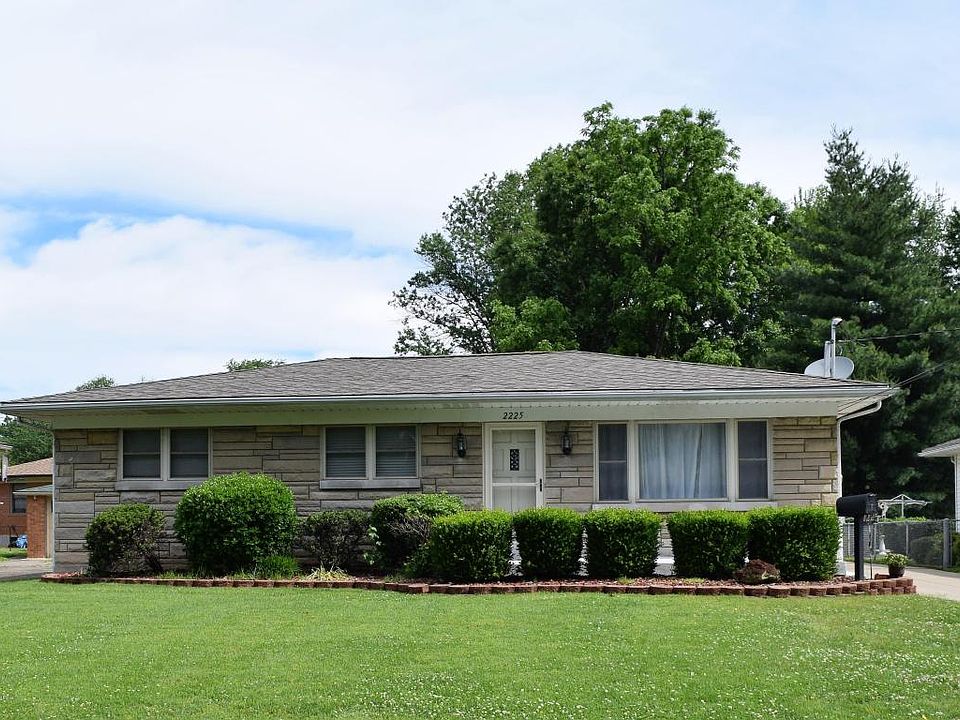 Classic Bedford stone home waiting for a new family to enjoy! Lots to love in thishome including hardwood floors, solid wood cabinets, a beautiful sun filled family room and a full basement. Your family can spread out and enjoy a variety of living spaces. Living room with hardwood floors and lots of windows is perfect for formal occasions or simply to relax and enjoy the view of the neighborhood. A dining area is situated between the living room and the spacious family room. Occasions that call for a crowd can be accommodated in this space. Kitchen features solid oak cabinets with a pantry and decorative shelving on the ends. Shelves are perfect for displaying anything from pottery to cookbooks. Lots of counter space for the chef in the family. The family room provides the open concept that so many families are seeking today. A vaulted ceiling and skylights let all the sun shine in this cozy room. There's a separate utility closet for a first floor laundry. The best surprise of all is the jetted tub. Who doesn't want to come home from work and sink into a six foot long, jetted tub and soak the stress away! An oasis in your own home. The bath has an updated vanity and light fixtures. Down the hall are three bedrooms with hardwood floors and ceiling fans. The lower level features a 1960's style finish featuring vintage tile and a long bar with bar stools. There's also a separate room to the rear of the basement that would make a perfect office or craft room. Storage and another laundry area are to the right of the steps. In the rear of the laundry is a shower and toilet. The laundry sink is available to use but the possibilities are endless to make this a full bath with a few modifications. Concrete drive provides a patio space as well as great parking. The 2.5 car garage has an electric opener and pull down stairs for lots of additional storage. Back yard is level and sunny. Great opportunity to own a well loved home! PLEASE READ AGENT NOTES.