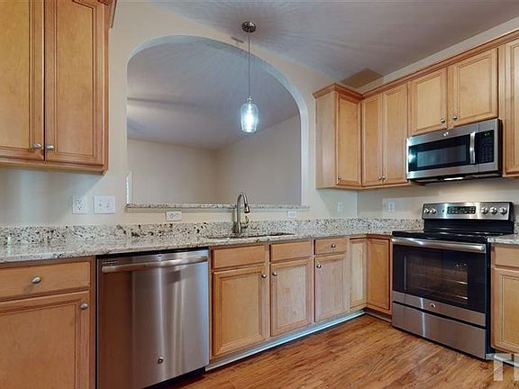 Beautiful townhome in Bedford at Falls River. Steps from community pools, tennis, volleyball, picnic area and clubhouse. Neighborhood parks and access to trails. Hardwoods throughout main floor and newer carpet up. Dining with wainscoting. Stainless appliances, granite counters and pantry in kitchen. Large family room with gas fireplace. Back patio with storage and fenced area. Main suite features 2 walk-in closets and bath has double vanity. Two additional bedrooms, hall bath and upstairs laundry.