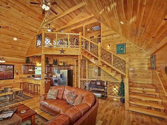INCREDIBLE OPPORTUNITY to own mountain getaway just minutes from downtown Gatlinburg! Knotty and Nice is located in the coveted Elk Springs Resort. Strong overnight rental pedigree backs up this gorgeous cabin. Soaring cathedral ceilings in the great room are adorned with tongue and groove. Mountain and wooded views through the wall off glass and generous decks give this cabin an open feel. Totally outfitted with game room, theater, and hot tub. This 4 Bed 4 Bath cabin will produce for you!