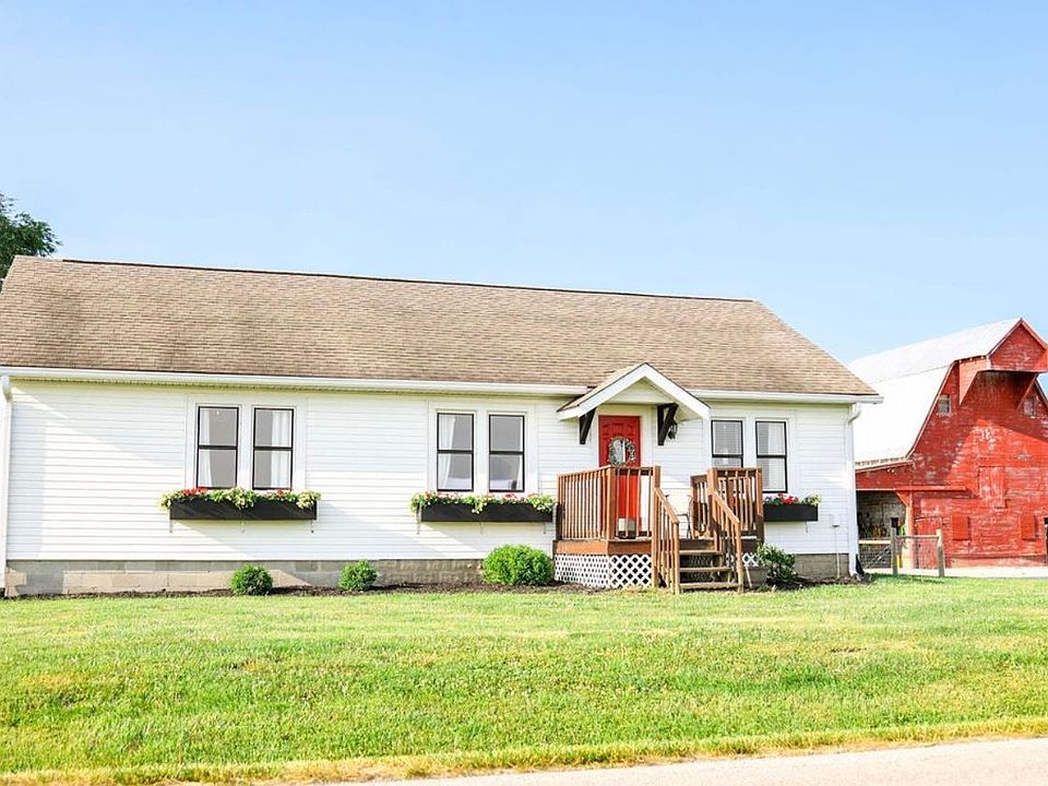 This cozy 3 bedroom, 2 bathroom home sits on almost an acre surrounded by nothing but peaceful farm land! Recently updated and conveniently located just outside of town. Property includes a spacious fenced in backyard with small shelter area and a big red barn.