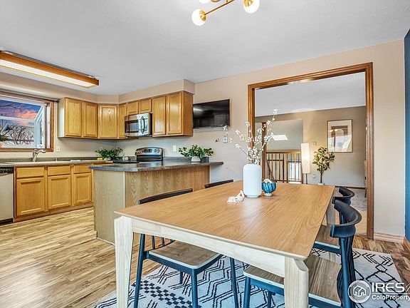Welcome to your sprawling split-level home that shines in all seasons. On a quiet loop, adjacent to a cul-de-sac, this home is tucked into Longmont's beloved Horizon West neighborhood. Enjoy summer afternoons in your shady backyard entertaining on your no-maintenance deck - or take a stroll out the backgate and straight into Raber Park. In winter, get toasty beside the stand-alone wood burning fireplace.Enter through an extensive covered breezeway connecting the home to your oversized two-car garage, decked out with a Tesla charger and plenty of storage & shop space. Step inside a roomy entryway, bright with vaulted ceilings & skylights, with plenty of room for your organizational delights.A spacious lower level rec room holds potential for a fourth bedroom, or possibilities as big as your imagination. With a kitchen designed for entertaining in-mind, this home is both ready for move-in, and primed for your personal touches. Enjoy extra peace of mind with the included smart thermostat, smart cameras and doorbell system. With RV parking in the south-facing driveway, covered patio, a backyard storage shed, and dog park just down the street, this home just gets sweeter.
