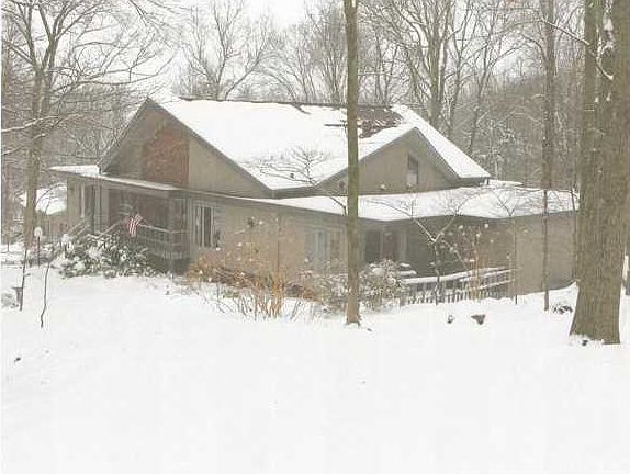Custom designed and built, two wooded lots. Open floor plan, soaring ceilings, custom built light fixture in Great Room. Very well maintained, time for cosmetic updating. All bedrooms on main level. Downstairs rec room w/kitchen and bath. Redwood siding, Pella windows and doors throughout. Isolated master bedrm, bath and study. Each bedrm has private covered porch. Spacious Kitchen with breakfast and hearth room w/wood burning stove, vaulted ceiling, Garage plus workshop